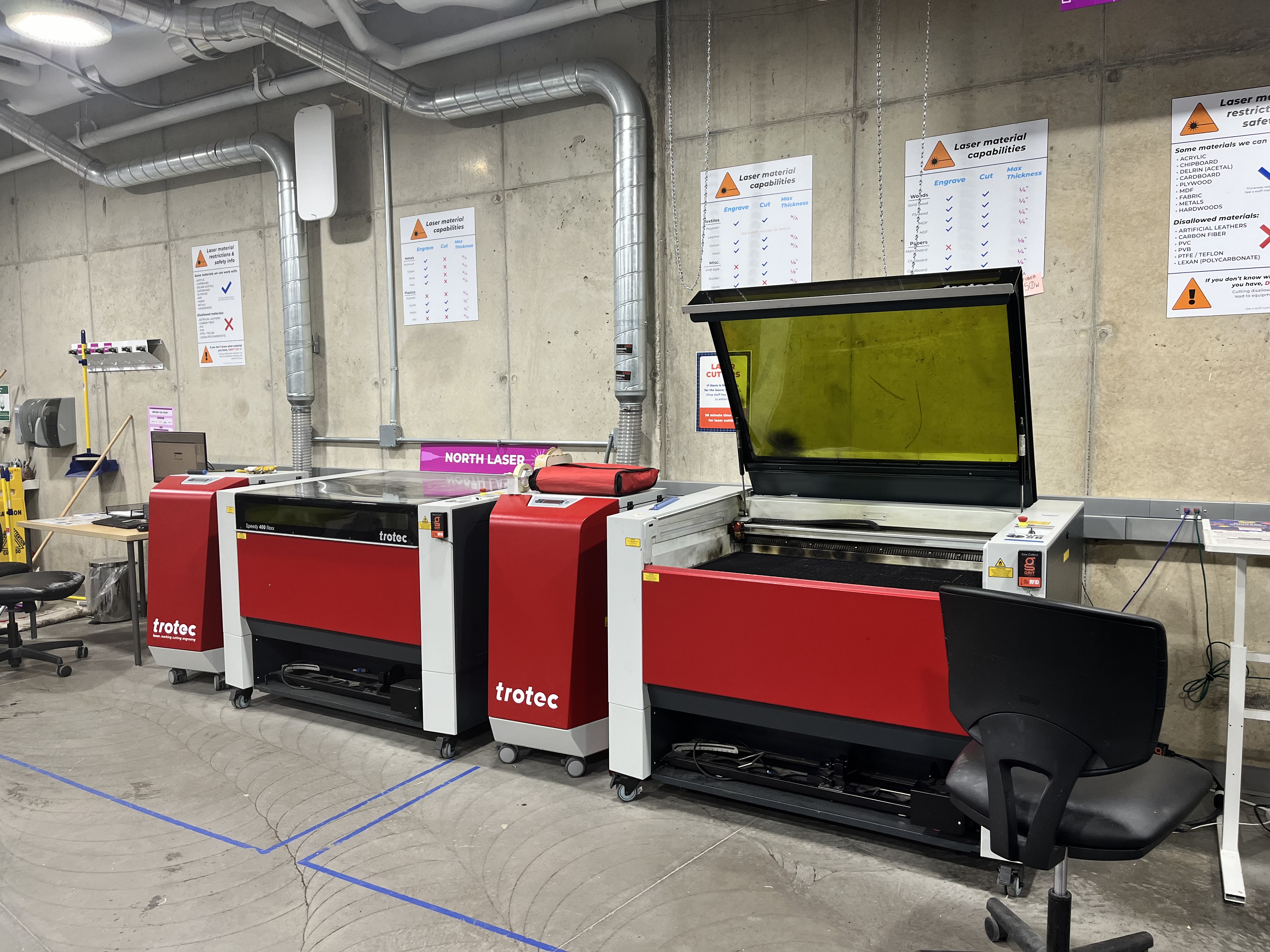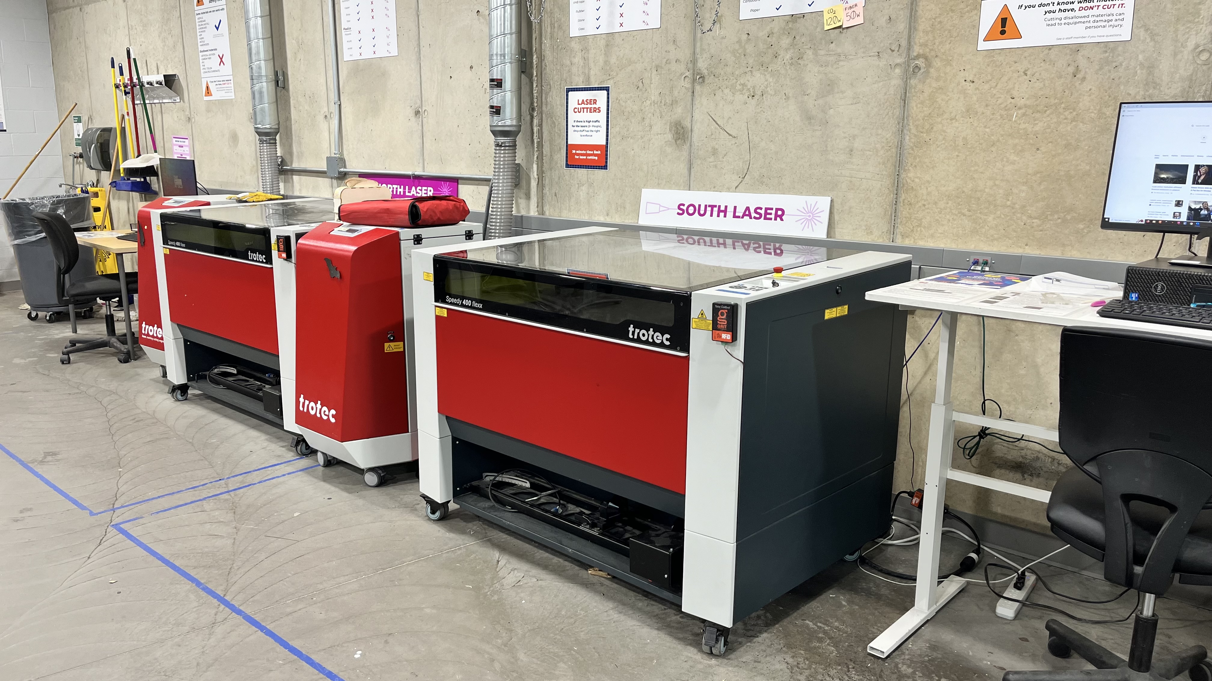 Here you will find our laser cutter and engravers, as well as many hand tools to finish or assemble projects.